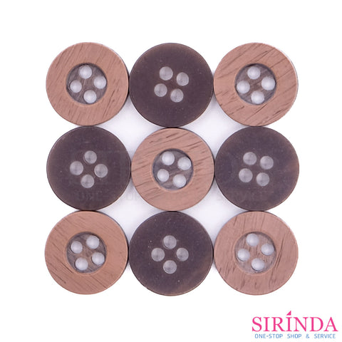กระดุมเรซิ่นลายไม้4รู (11.43มิล) (0001101)