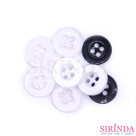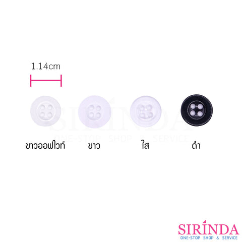 กระดุมเรซิ่นเสื้อเชิ้ตและเสื้อโปโล4รู โทนขาวดำใส (11.43มิล) (0001117)