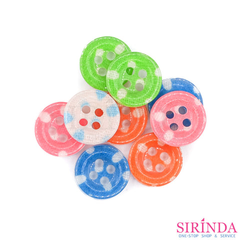 กระดุมเรซิ่นผ้าลายจุด4รู (11.43มิล) (0001170)