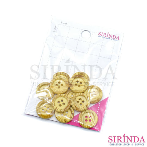 กระดุมเรซิ่นลายไม้4รู (15มิล) (0001090)
