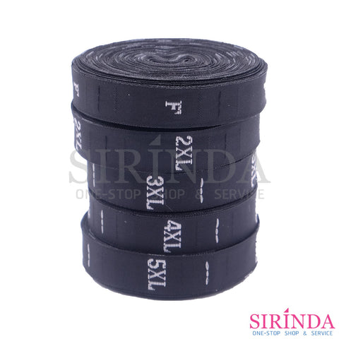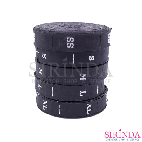จำหน่ายป้ายไซส์ทอ ราคาโรงงาน ป้ายทอสำเร็จรูป ป้ายติดเสื้อ ป้ายอักษร พื้นดำ อักษรขาว Woven Size Label