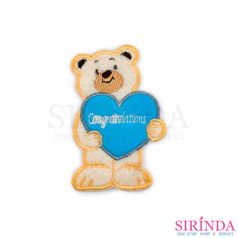 ตัวรีดการ์ตูนหมีอุ้มหัวใจCongratulation ตัวรีดติดเสื้อ อาร์มปักตกแต่ง DIY EMBROIDERY PATCH (00080016)