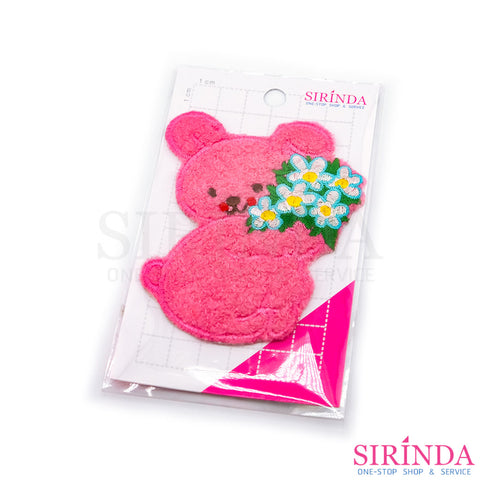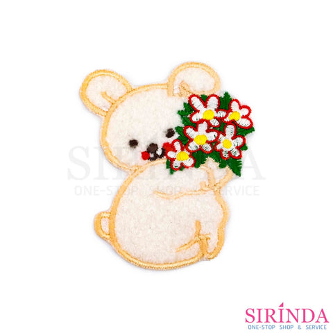 ตัวรีดการ์ตูนหมีอุ้มช่อดอกไม้ ตัวรีดติดเสื้อ อาร์มปักตกแต่ง DIY EMBROIDERY PATCH (00080001)