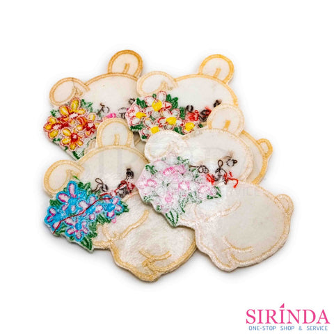 ตัวรีดการ์ตูนหมีอุ้มช่อดอกไม้ ตัวรีดติดเสื้อ อาร์มปักตกแต่ง DIY EMBROIDERY PATCH