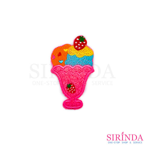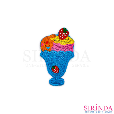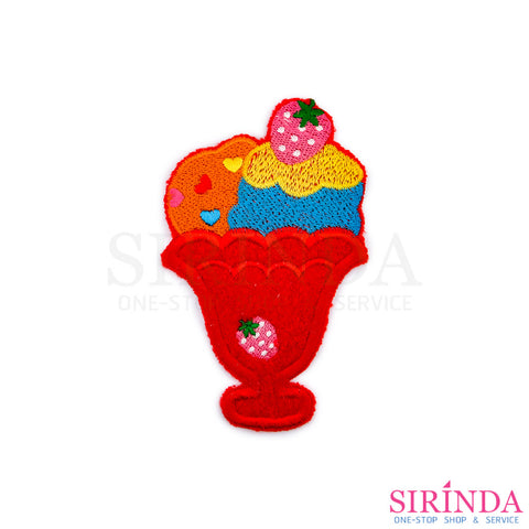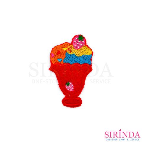 ตัวรีดการ์ตูนไอศครีมถ้วยสูง ตัวรีดติดเสื้อ อาร์มปักตกแต่ง DIY EMBROIDERY PATCH (00080012)