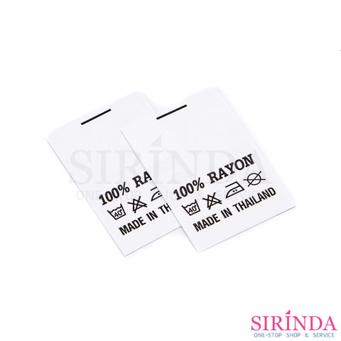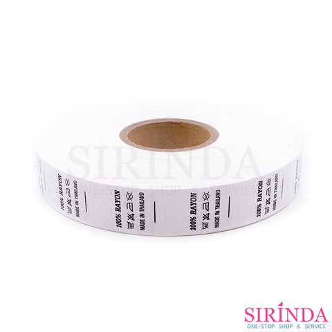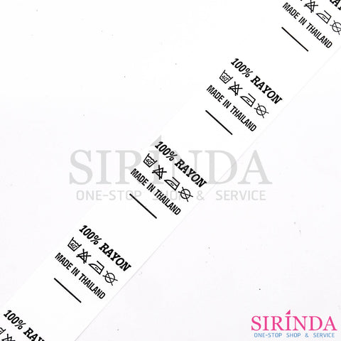ราคาโรงงาน ป้ายพิมพ์แคร์ 100% RAYON 2cm พื้นขาว อักษรดำ เนื้อไนล่อน I Nylon Printed Care Label