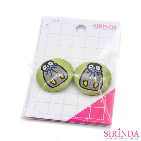 กระดุมปั๊ม กระดุมผ้าทอปั๊มการ์ตูน เพนกวินนั่ง (28มิล)