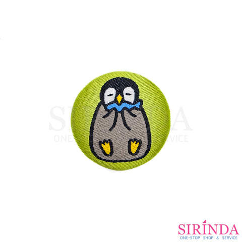 กระดุมปั๊ม กระดุมผ้าทอปั๊มการ์ตูน เพนกวินนั่ง (28มิล) (00370001)