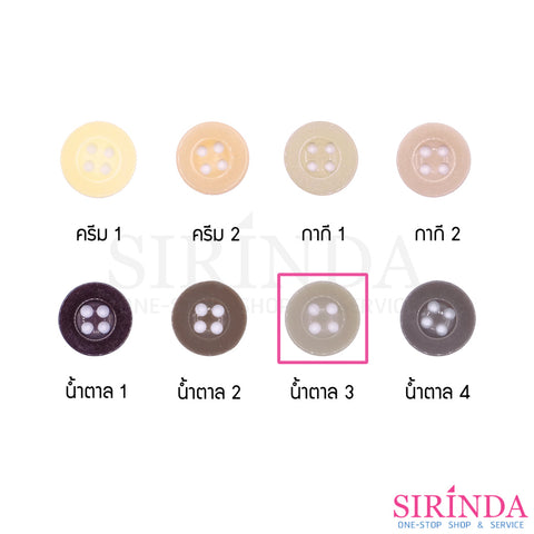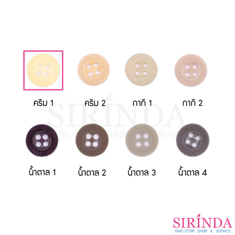 กระดุมเรซิ่นเสื้อเชิ้ตและเสื้อโปโล4รู โทนน้ำตาลครีม (11.43มิล) (0001117)