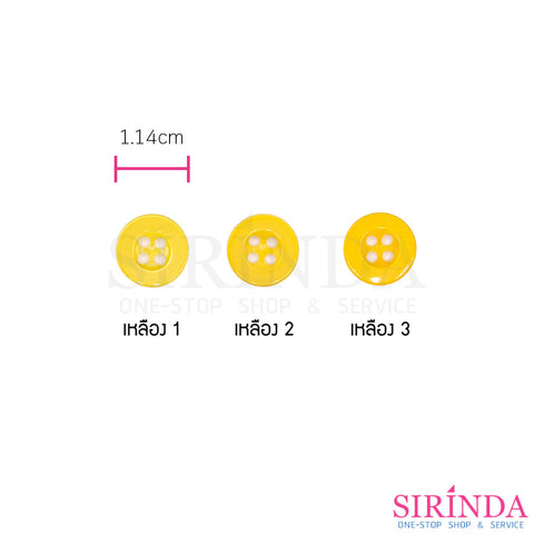 กระดุมเรซิ่นเสื้อเชิ้ตและเสื้อโปโล4รู โทนเหลือง (11.43มิล) (0001117)
